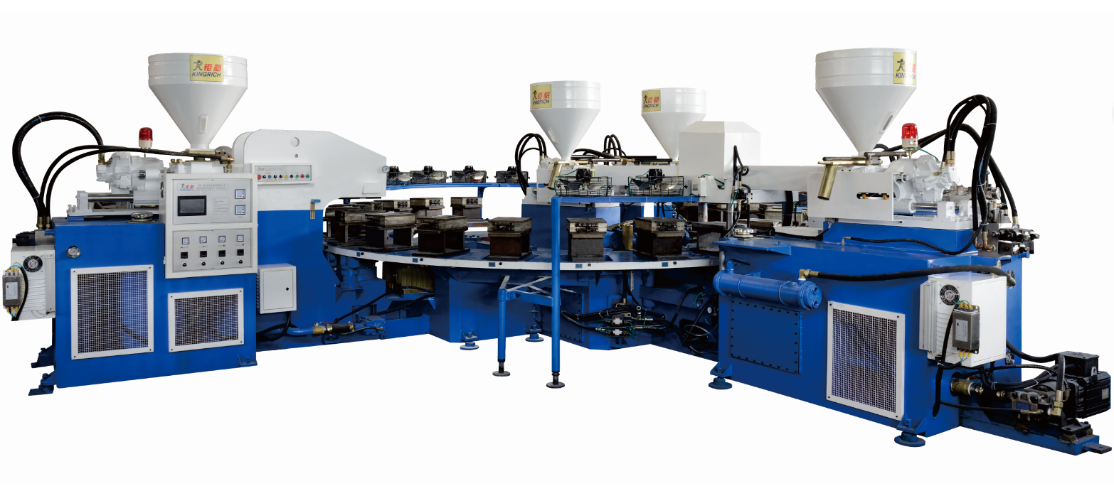Full automatic two injection head four color camouflage PVC blowing injection moulding machine